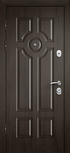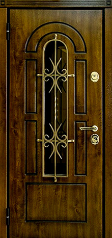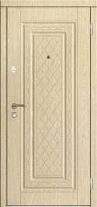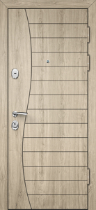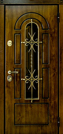 Каркас из профильной трубы 50х25 мм и стальной лист толщиной до 4 мм придают двери прочность и устойчивость к износу. С обеих сторон полотно облицовано МДФ ПВХ, а декоративное оформление дополнено стеклом и коваными элементами с решёткой, придающими элегантный и выразительный вид. В центре представлена дверь для МДФ ПВХ со стеклом и ковкой №99, оснащённая двумя замками: сувальдным Kale Kilit 257 L 3-го класса защиты и цилиндровым Border ЗВ 4-3Г 2-го класса, каждый с тремя ригелями. Два контура резинового уплотнения обеспечивают защиту от сквозняков, а при необходимости дверь можно дополнить утеплителем для повышения тепло- и шумоизоляции. Возможна индивидуальная отделка, установка зеркала, стеклопакета, видеодомофона, кованых элементов, а также изготовление доборов и наличников в тон полотна.