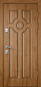 Металлическая дверь МДФ и шпон №29 — практичное и универсальное решение для установки в любой тип помещения, от квартиры до загородного дома. Наружная отделка из МДФ с натуральным шпоном придаёт полотну презентабельный внешний вид и устойчивость к внешним воздействиям, а внутренняя сторона облицована МДФ панелью с износостойким ПВХ-покрытием, не требующим особого ухода. Металлический каркас изготовлен из профильной трубы с внешним листом толщиной до 4 мм и усилен рёбрами жёсткости, что делает конструкцию прочной и надёжной. Противосъёмные блокираторы диаметром 10 мм и два контура резинового уплотнителя обеспечивают дополнительную защиту и герметичность. Шумо- и теплоизоляция возможна как опция, с применением минваты или пенопласта. Дверь можно доработать под индивидуальные требования по размерам, замкам, фурнитуре и дополнительным элементам, включая стеклопакет, видеоглазок и декоративные вставки.