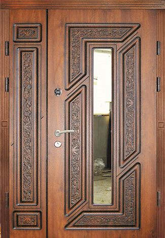 Возможно комбинировать любые варианты отделки, а также в любую дверь можно добавить зеркало, стеклопакет и кованные элементы. Железная дверь может комплектоваться любыми замками и фурнитурой. Замена цвета и рисунка отделки не влияет на стоимость.