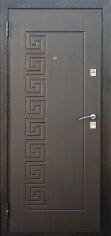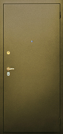 Эта дверь сочетает в себе надёжность металлической конструкции и практичность декоративной отделки. Каркас и полотно выполнены из профильной трубы 50×25 мм с листом стали толщиной до 4 мм, что гарантирует прочность и устойчивость к взлому. С внешней стороны дверь покрыта молотковым напылением, которое защищает от коррозии, механических повреждений и придаёт ей стильный, фактурный вид. Внутренняя отделка выполнена панелями МДФ ПВХ, что делает изделие эстетичным и подходящим для установки в жилых помещениях. Дверь с порошковым покрытием №17 оснащена противосъёмными штырями диаметром 10 мм и двумя контурами резинового уплотнителя, которые обеспечивают защиту от сквозняков и пыли. По желанию можно дополнить конструкцию тепло- и шумоизоляцией, а также разнообразить оформление декоративными элементами, стеклопакетом или зеркалом.
